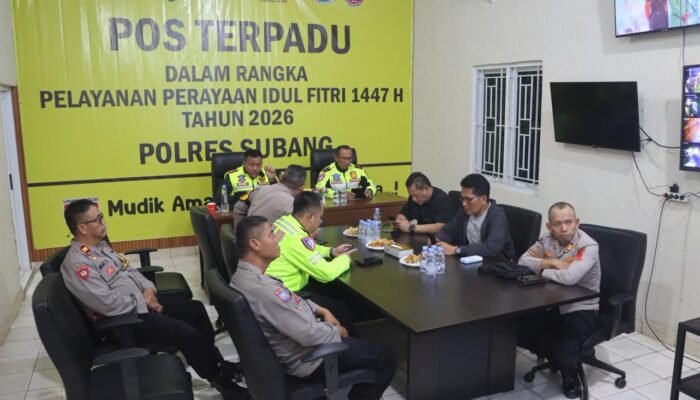 SUBANG – Pada Sabtu malam, 14 Maret 2026, jajaran Polres Subang mengikuti kegiatan Analisa dan Evaluasi (Anev) Kamtibmas Operasi Ketupat 2026 tingkat Polda Jawa Barat yang dilaksanakan secara daring melalui aplikasi Zoom Meeting. Kegiatan tersebut berlangsung mulai pukul 20.00 WIB hingga selesai dan dipusatkan di Pos Terpadu Cilameri.